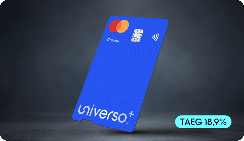CARTÃO UNIVERSO: TAEG 18,9%. Exemplo para limite de crédito de 1.500€, reembolsado em 12 meses, TAN 18,43%. Crédito sujeito a aprovação e concedido por Universo, IME, S.A., registada no Banco de Portugal com o número 7500.